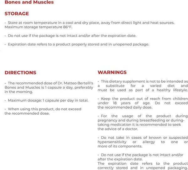 - This natural formula helps you stay strong, confident, and healthy, without any harsh chemicals or fillers. Feel empowered to live your best life with Dr. Matteo Bertelli’s Bones & Muscles.*