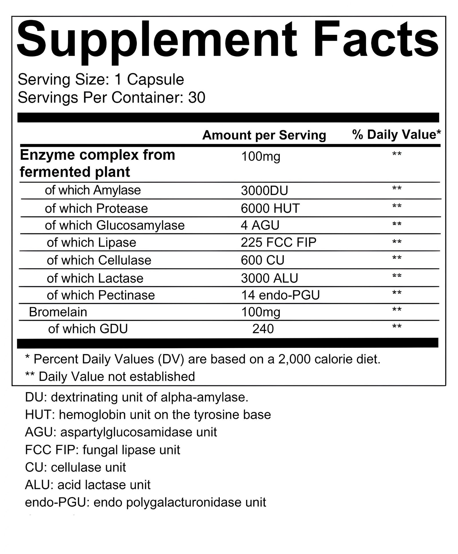 The fomulation of Dr. Matteo Bertelli’s™ Digestive Enzymes Complex* includes: