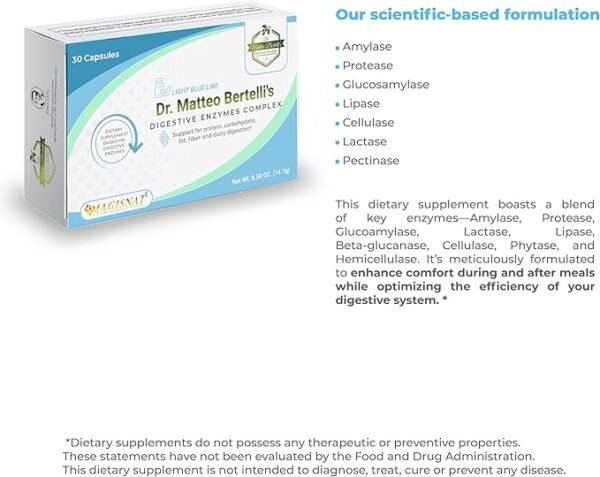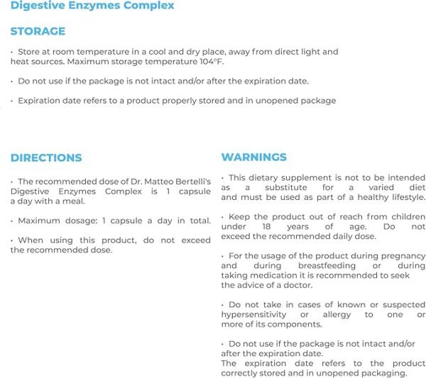 Dr. Matteo Bertelli’s Digestive Enzymes Complex is a Dietary Supplement based on Digestive Enzymes.