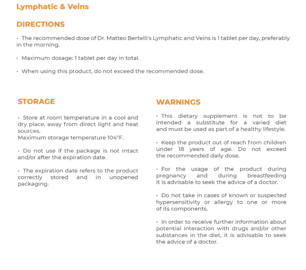 The properties of Dr. Matteo Bertelli’s™ Lymphatic & Veins* are:
